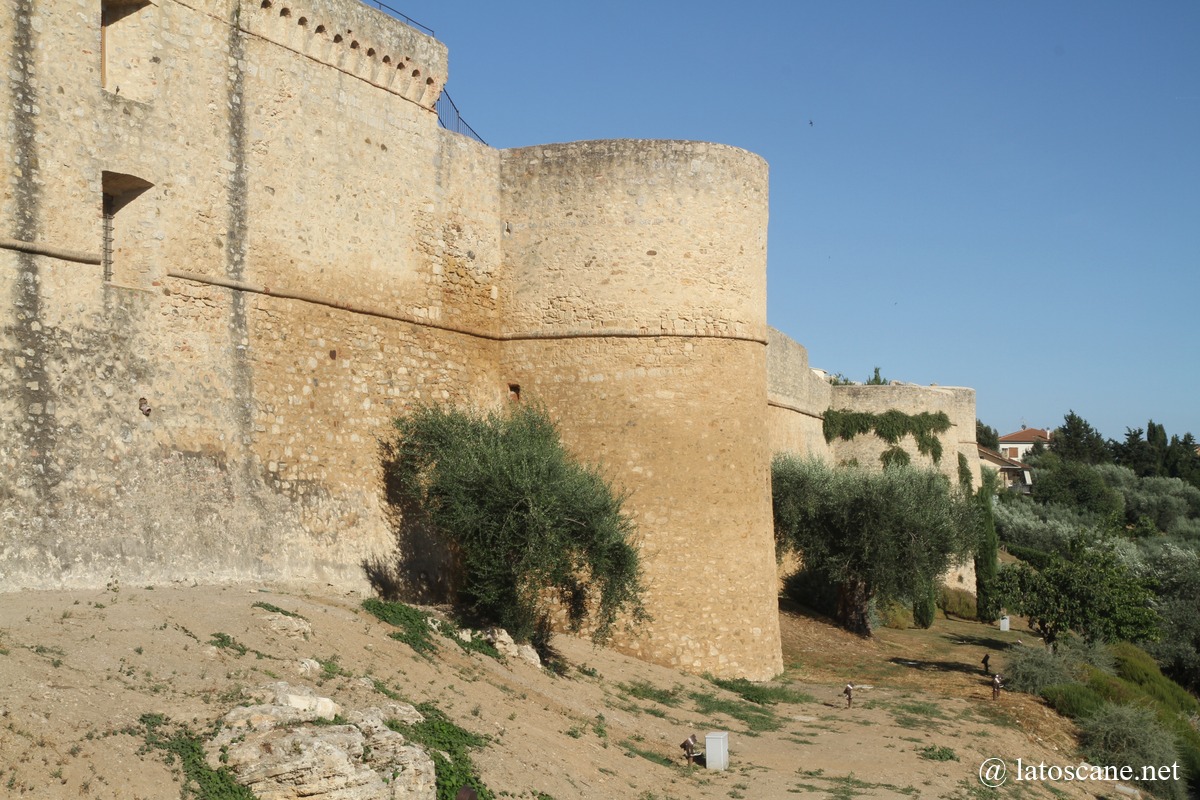 Ce qui impressionne le plus sont ses belles murailles, presque intimidantes lorsque l’on rejoint se rapproche de Magliano depuis la côte, dominant une colline entourée d’oliviers et de vignes.